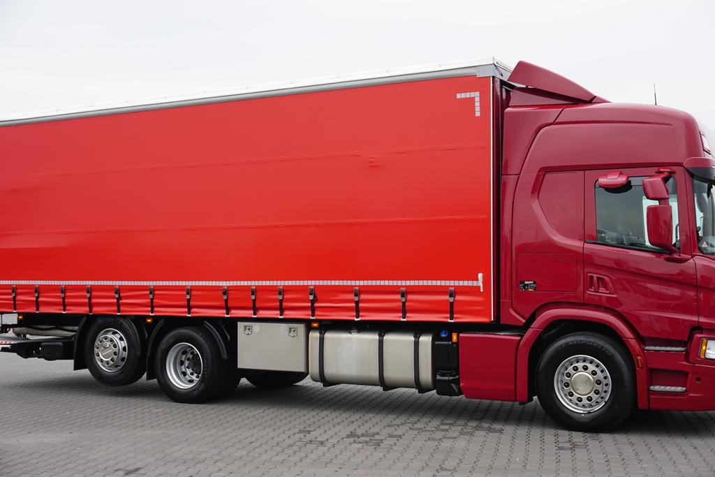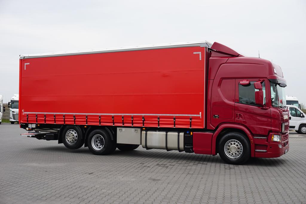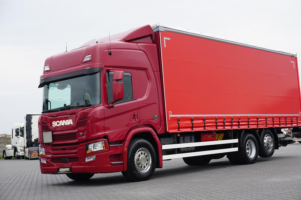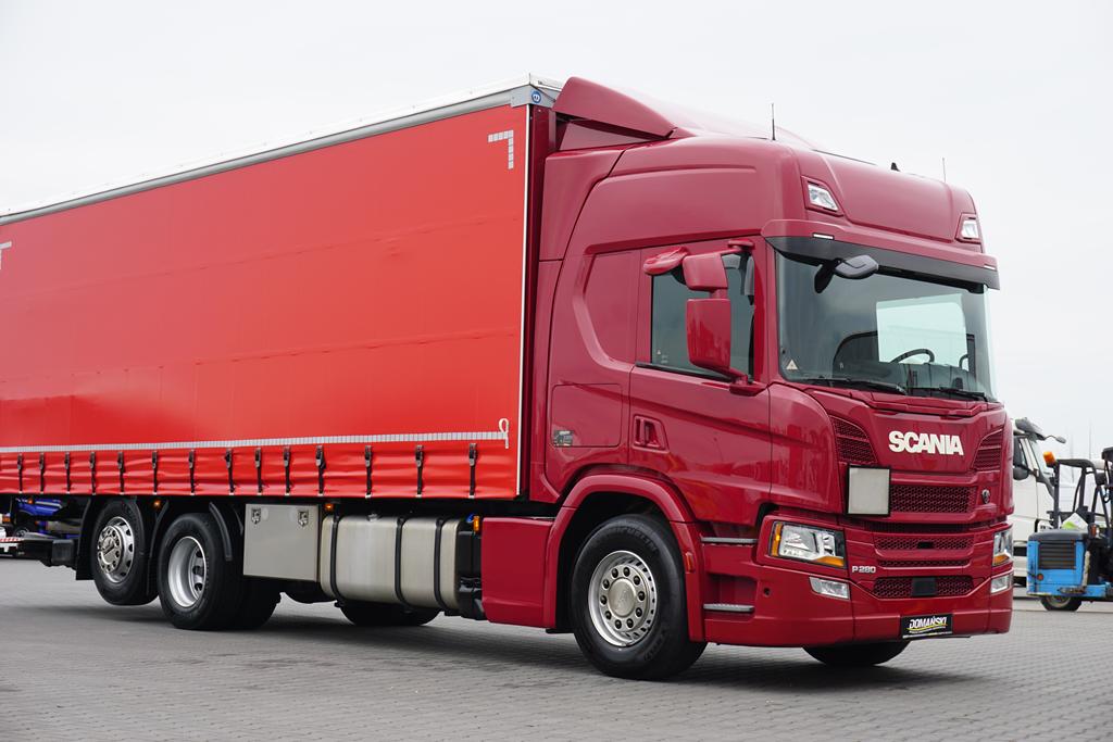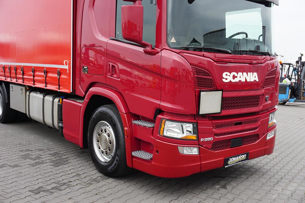 SCANIA / P 280 / ACC / E 6 / FIRANKA + WINDA / 20 PALET / DŁ. 8,2 M / OŚ SKRĘTNA